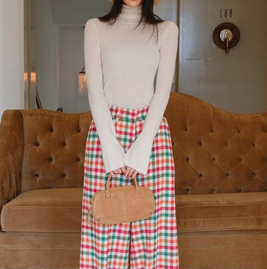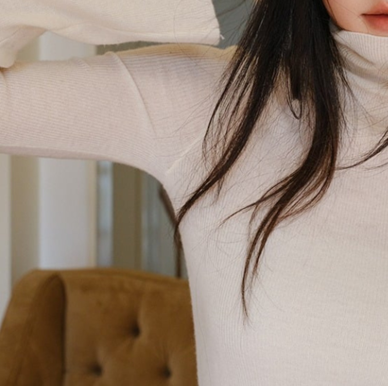 タートルネックなので首元まで暖かく、フレアスリーブがさりげないおしゃれを演出してくれるニットです。